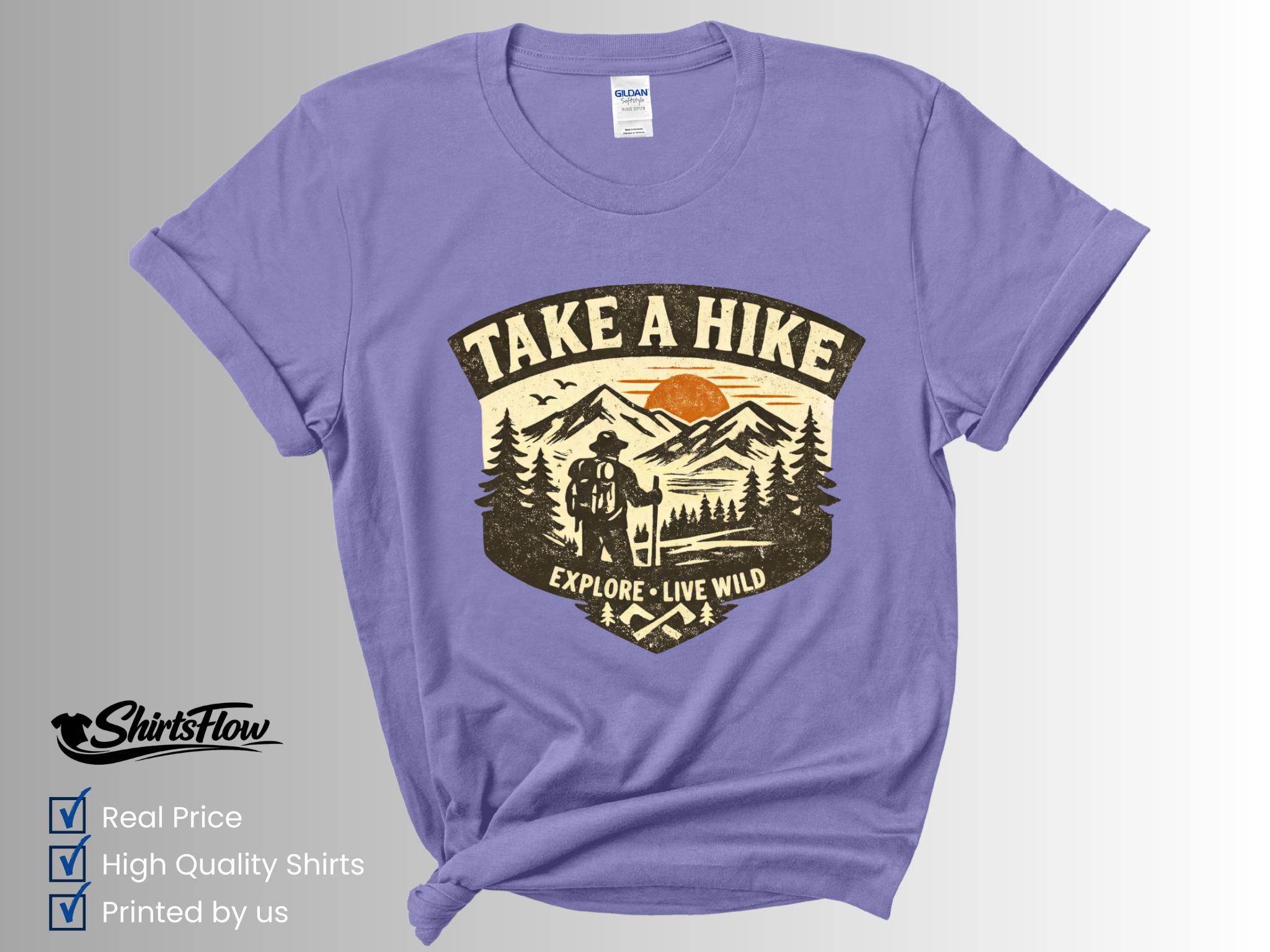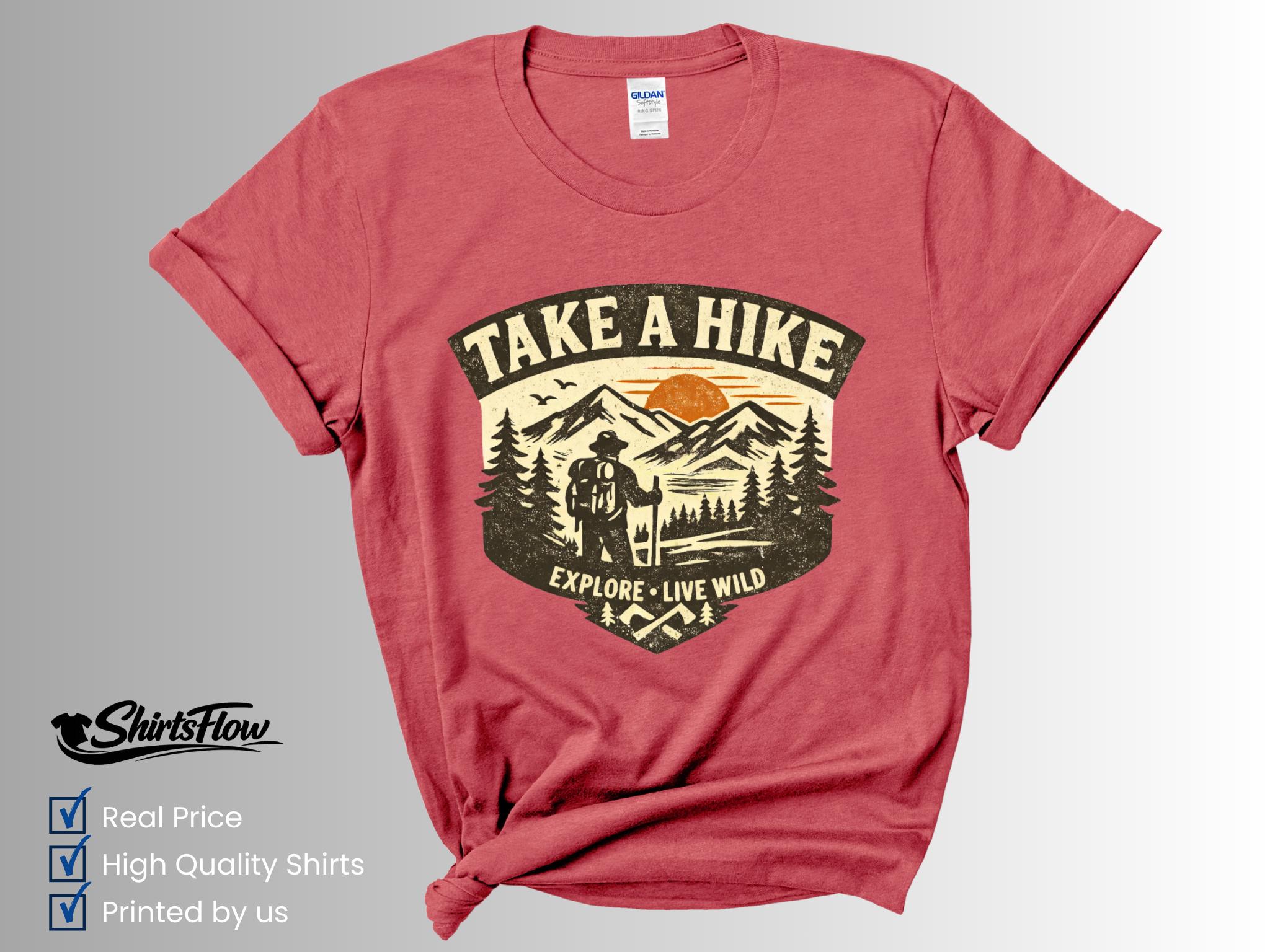 Show your love for the outdoors with this fun Take A Hike Shirt. Perfect for hikers, nature lovers, and adventure seekers, this shirt is great for exploring trails, camping trips, or simply enjoying the beauty of nature.