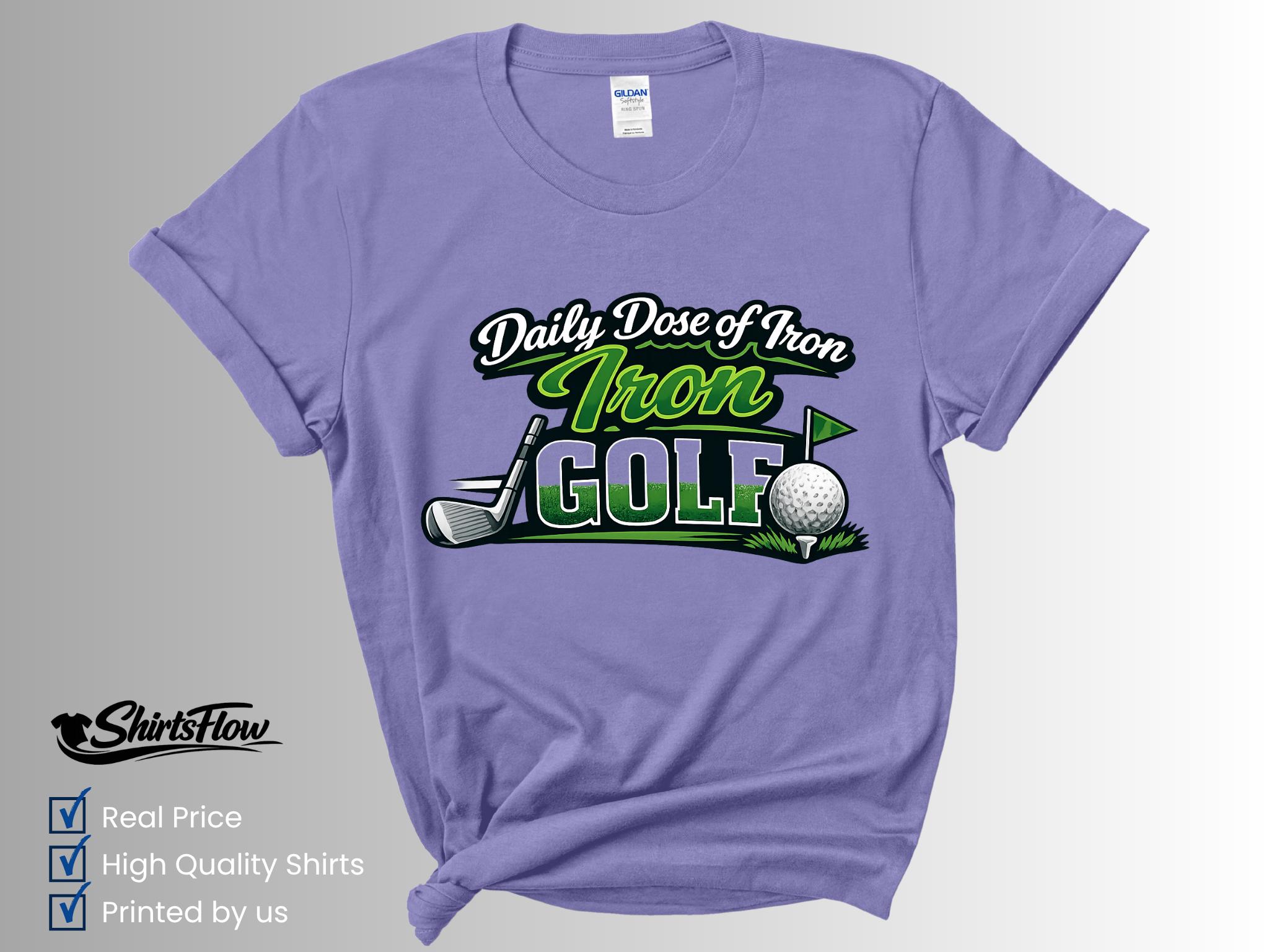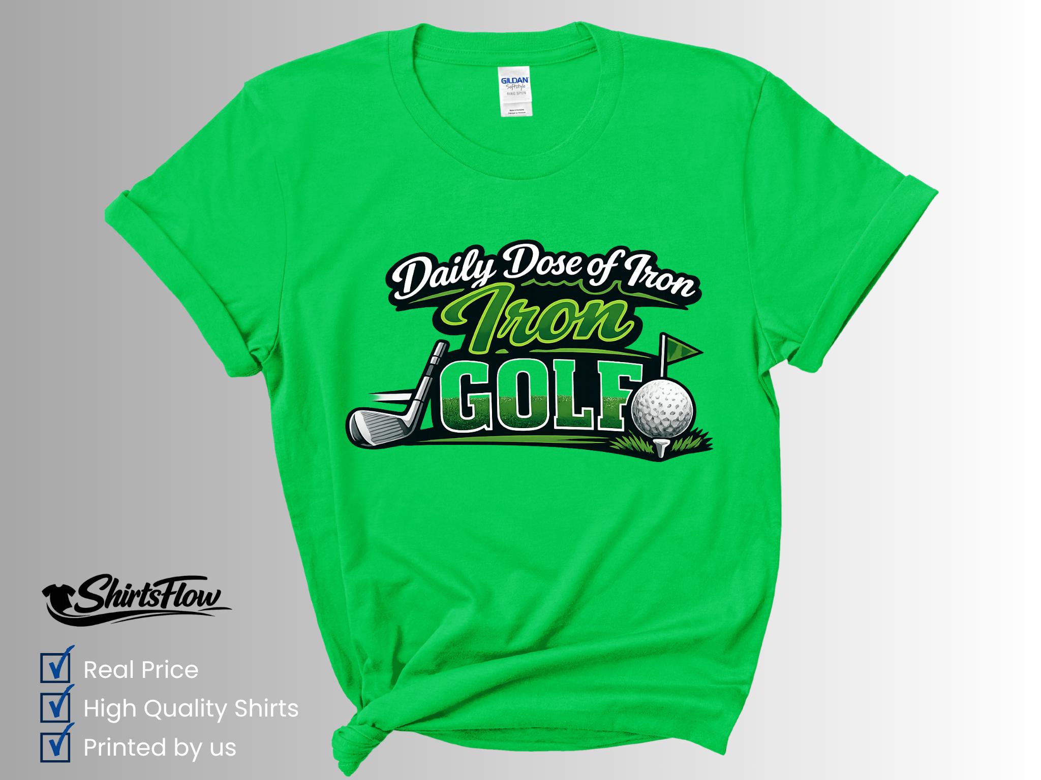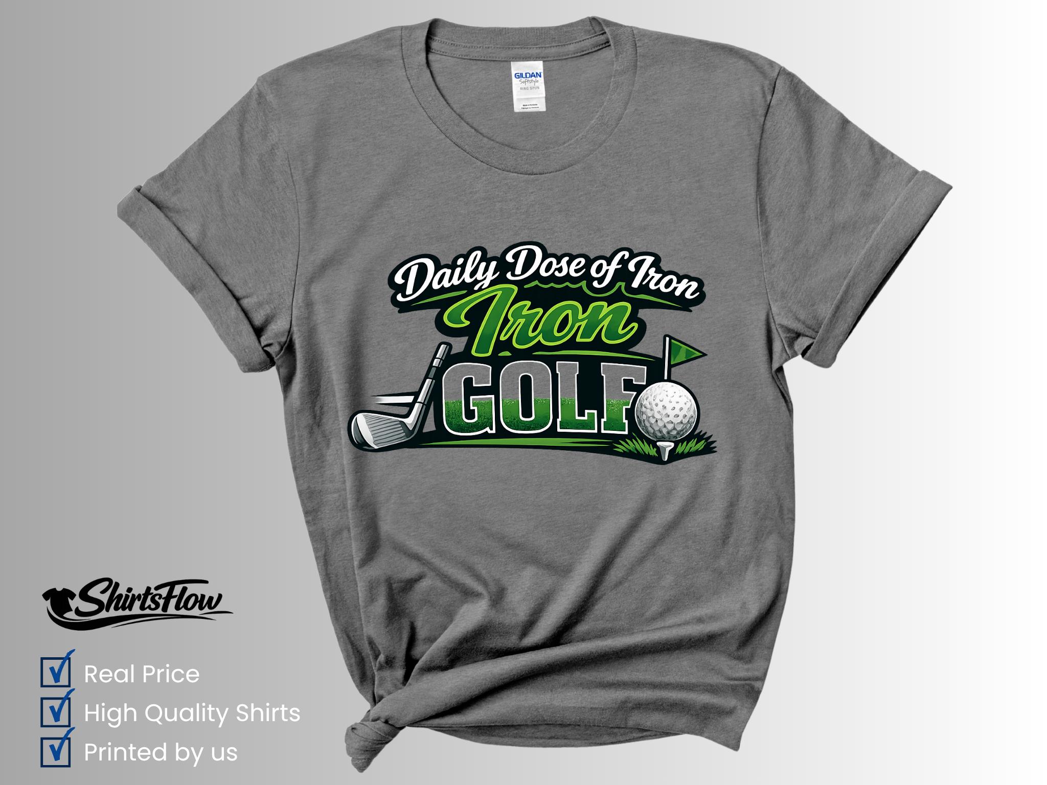 Hit the course in style with this fun Daily Dose of Iron Golf T-Shirt. Perfect for golfers who love the game (and a good pun), this shirt adds personality and humor to your time on the green.