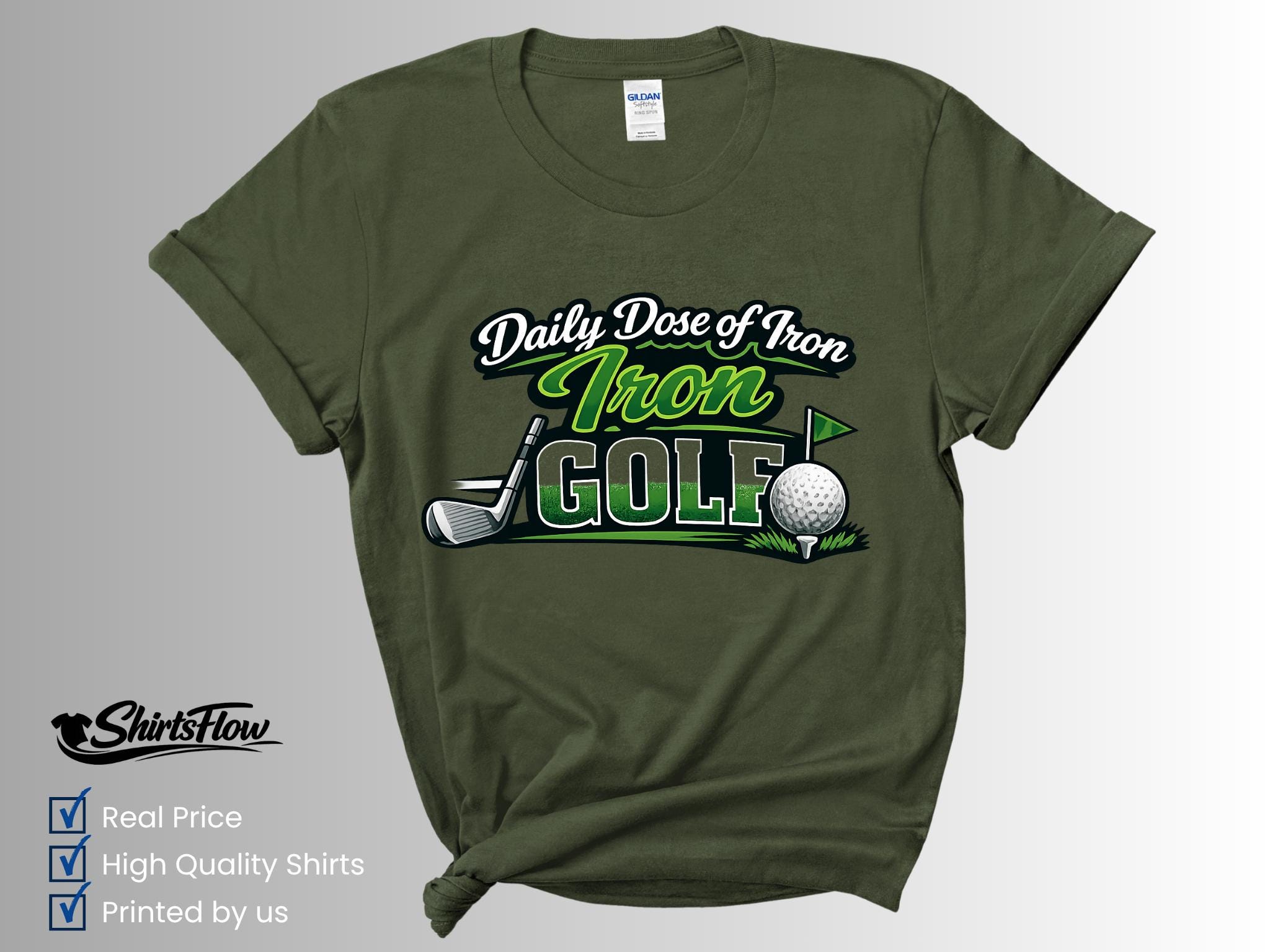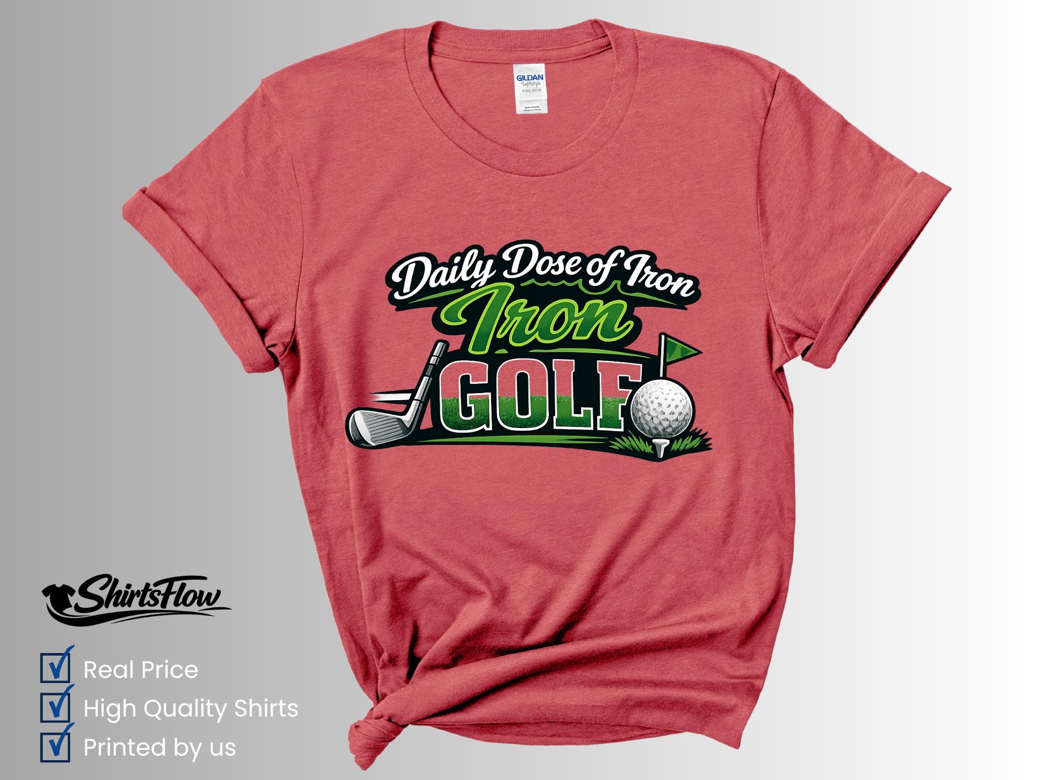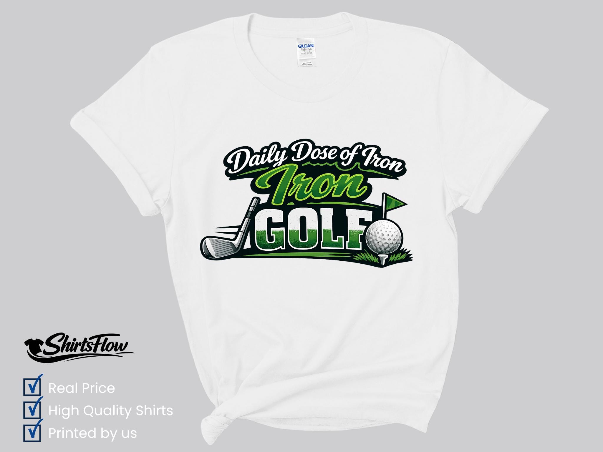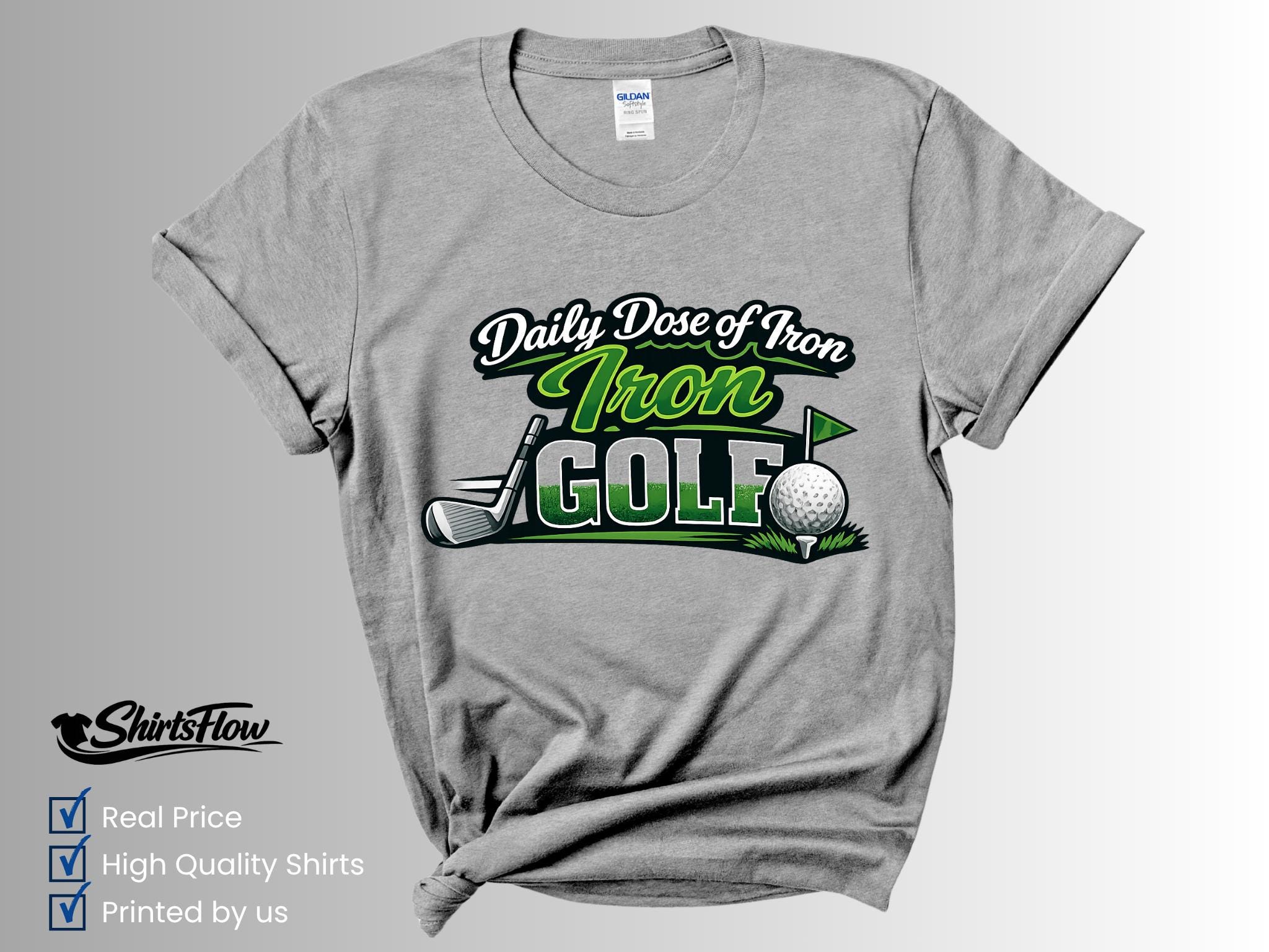 Hit the course in style with this fun Daily Dose of Iron Golf T-Shirt. Perfect for golfers who love the game (and a good pun), this shirt adds personality and humor to your time on the green.