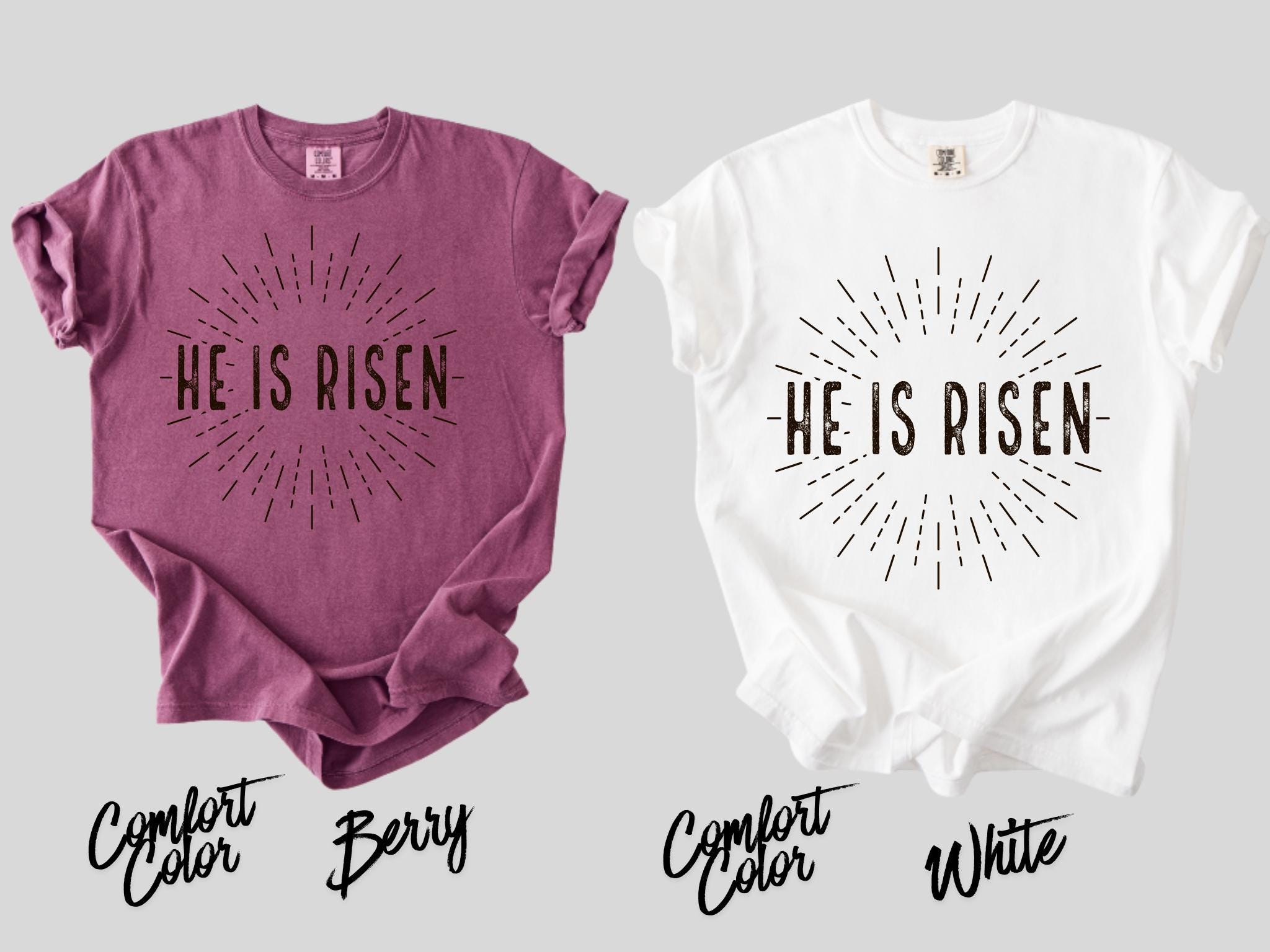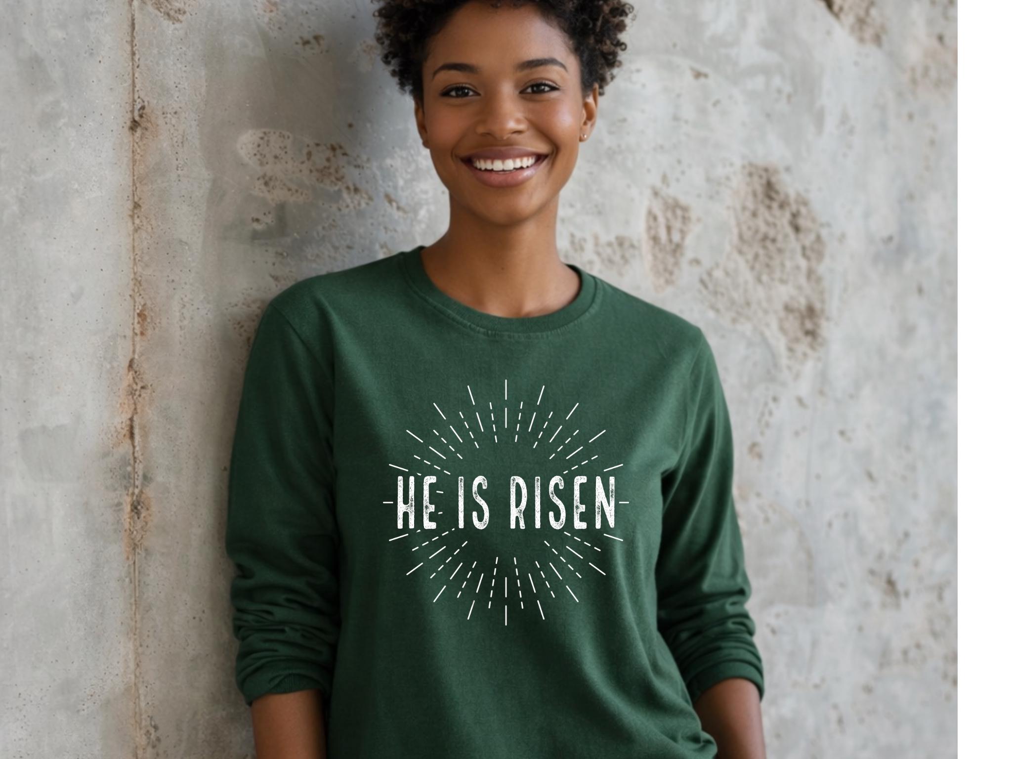 Celebrate the message of hope and victory with this powerful “He Is Risen” T-Shirt. Perfect for Easter and beyond, this faith-filled shirt represents the resurrection of Jesus and the foundation of Christian belief.