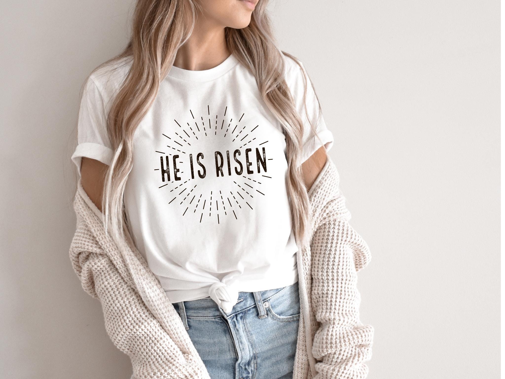 Share the joy of the resurrection with this inspiring He Is Risen Tee. ✝️✨